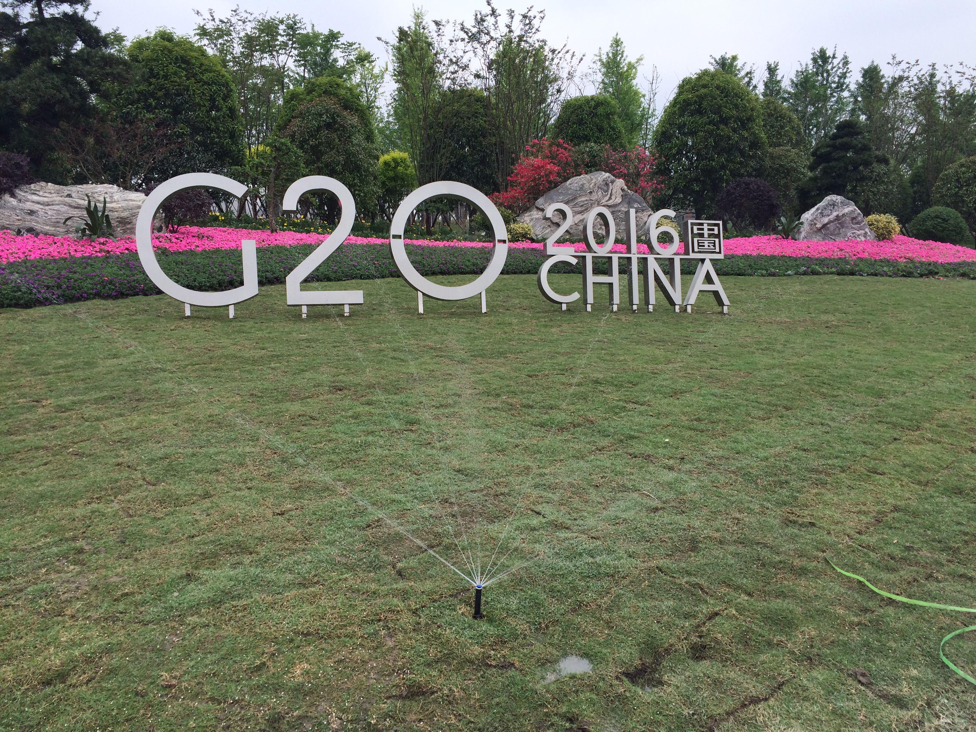 美國知名灌溉設備——HUNTER灌溉系統(tǒng)服務峰會綠地。綠友公司根據(jù)現(xiàn)場情況,為2016年杭州G20峰會國際會議中心、西湖國賓館、奧體中心、國際博覽中心屋頂花園等相關場所量身打造出智能、節(jié)能的自動灌溉控制系統(tǒng)。小型、不規(guī)則道路綠化帶,采用 NODE 無線電池系統(tǒng)和 MP 多射線低灌溉強度節(jié)水噴頭。大型、公共養(yǎng)護綠地,采用中央遠程 GPRS 通訊、ACC 兩線解碼,配 ET 蒸發(fā)蒸騰及土壤濕度傳感系統(tǒng)以及角度自動恢復的 PGP 旋轉噴頭。亨特產(chǎn)品和綠友服務得到項目方認可。