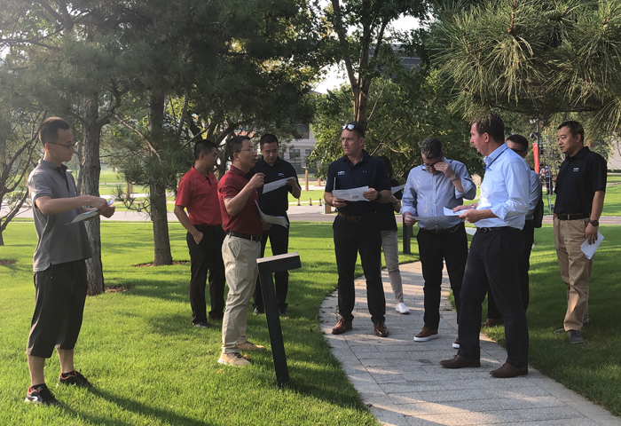 先正達專業(yè)環(huán)境部草坪與園林業(yè)務(wù)全球市場總監(jiān)Mr? Mark、公共衛(wèi)生全球業(yè)務(wù)總監(jiān)Mr? Andy、亞太區(qū)業(yè)務(wù)總監(jiān)Mr? Mick、中國區(qū)業(yè)務(wù)總監(jiān)端木瑞康先生以及中國區(qū)草坪與園林業(yè)務(wù)經(jīng)理潘全山先生、中國區(qū)市場經(jīng)理楊春明先生也一同訪問了綠友集團。