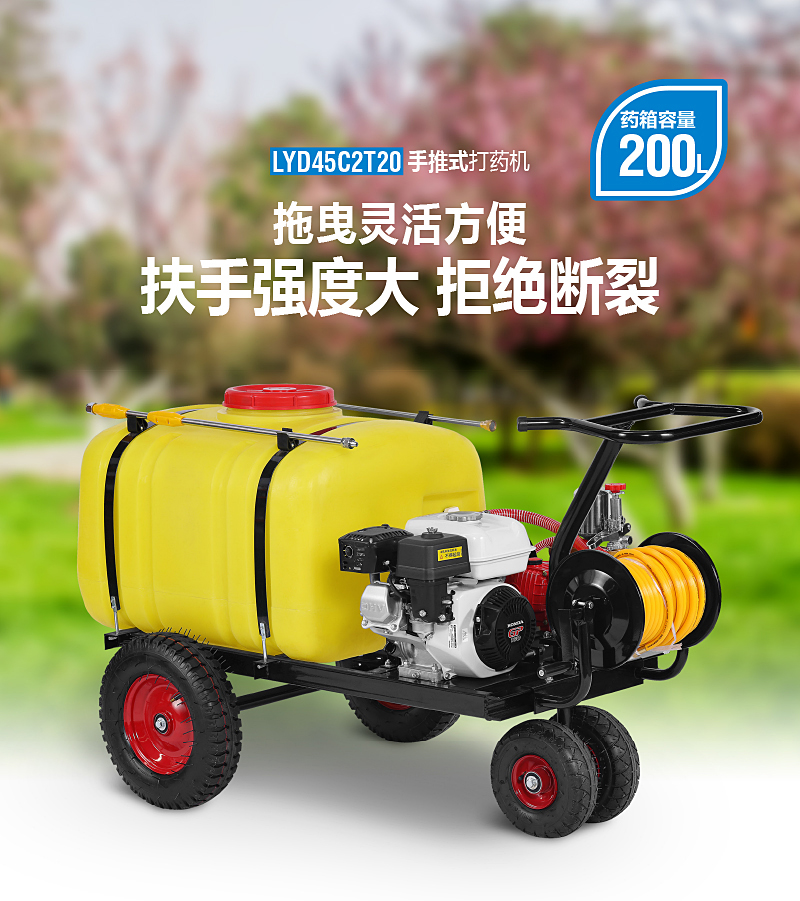 200L手推機動噴霧機是一款結構緊湊,靈活實用的園林植保作業機具。