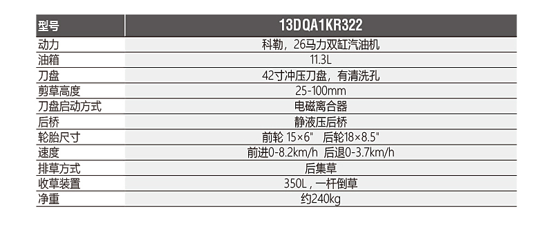 1. 科勒26馬力雙缸汽油機(jī),油箱11.3L