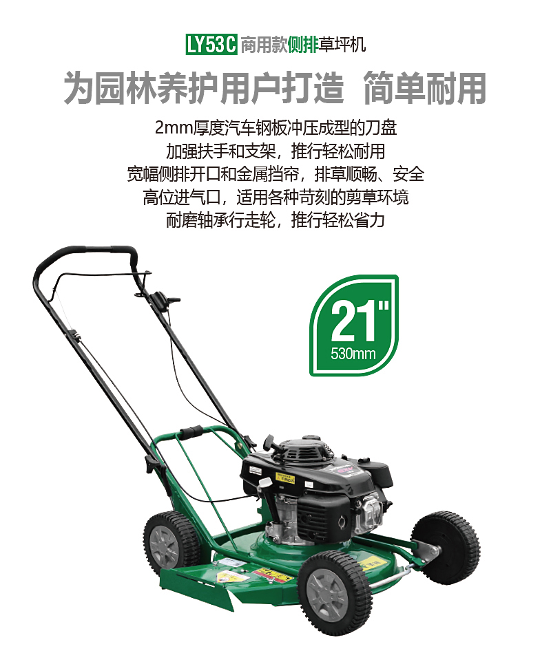 經(jīng)典純側(cè)草坪機(jī),是根據(jù)國內(nèi)草坪修剪習(xí)慣,設(shè)計(jì)的一款性價(jià)比高的草坪修剪機(jī),結(jié)構(gòu)簡單耐用,寬大側(cè)排草開口配置金屬金屬擋簾,安全耐磨。